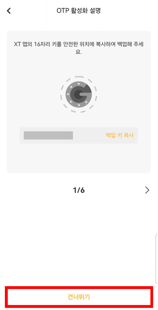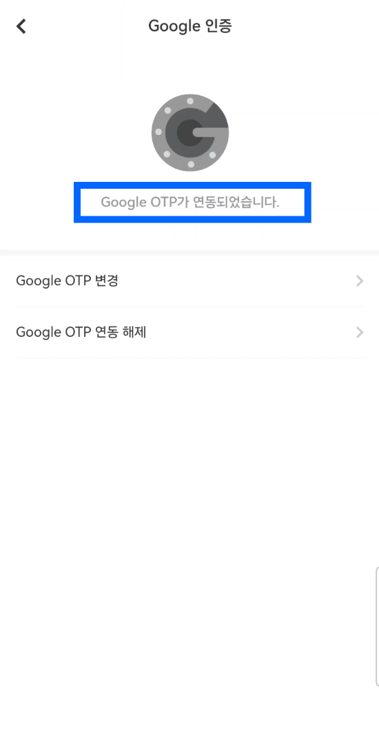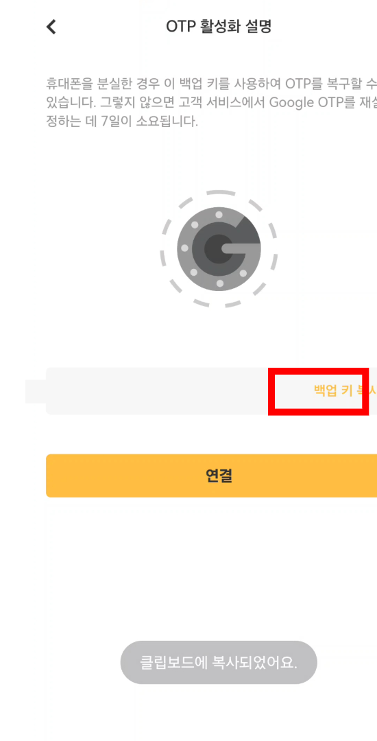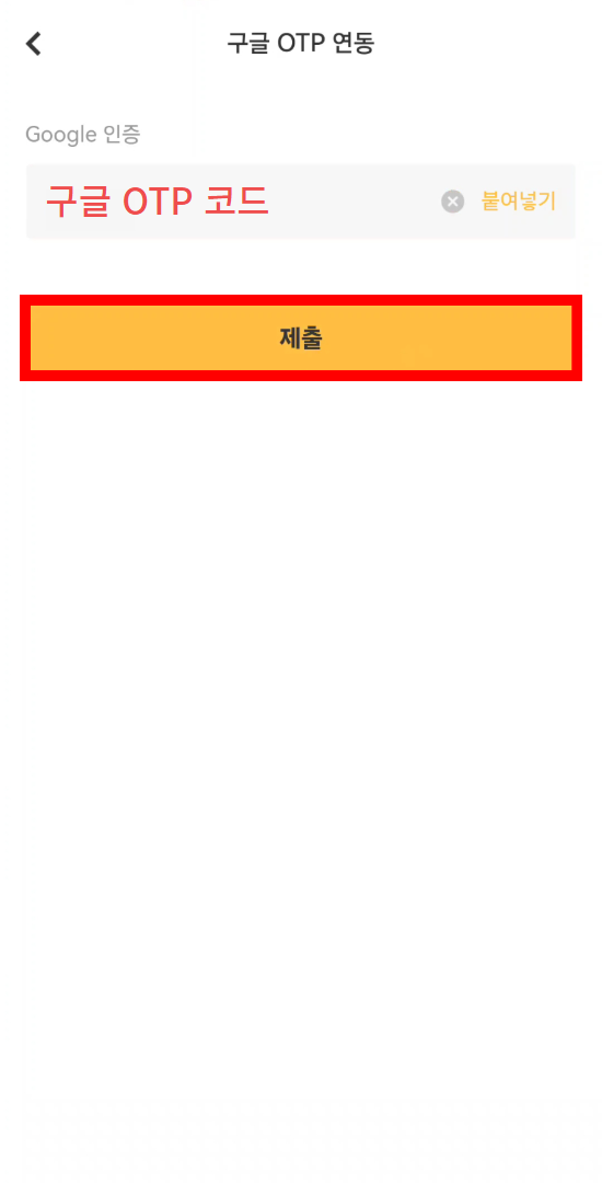 8. 생성된 구글 OTP 인증 코드를 복사해 붙여넣습니다.