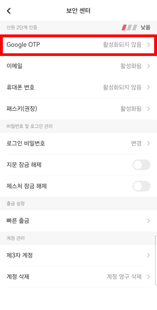 [구글 OTP 다운로드] 버튼을 눌러 다운 받아 진행해주세요.